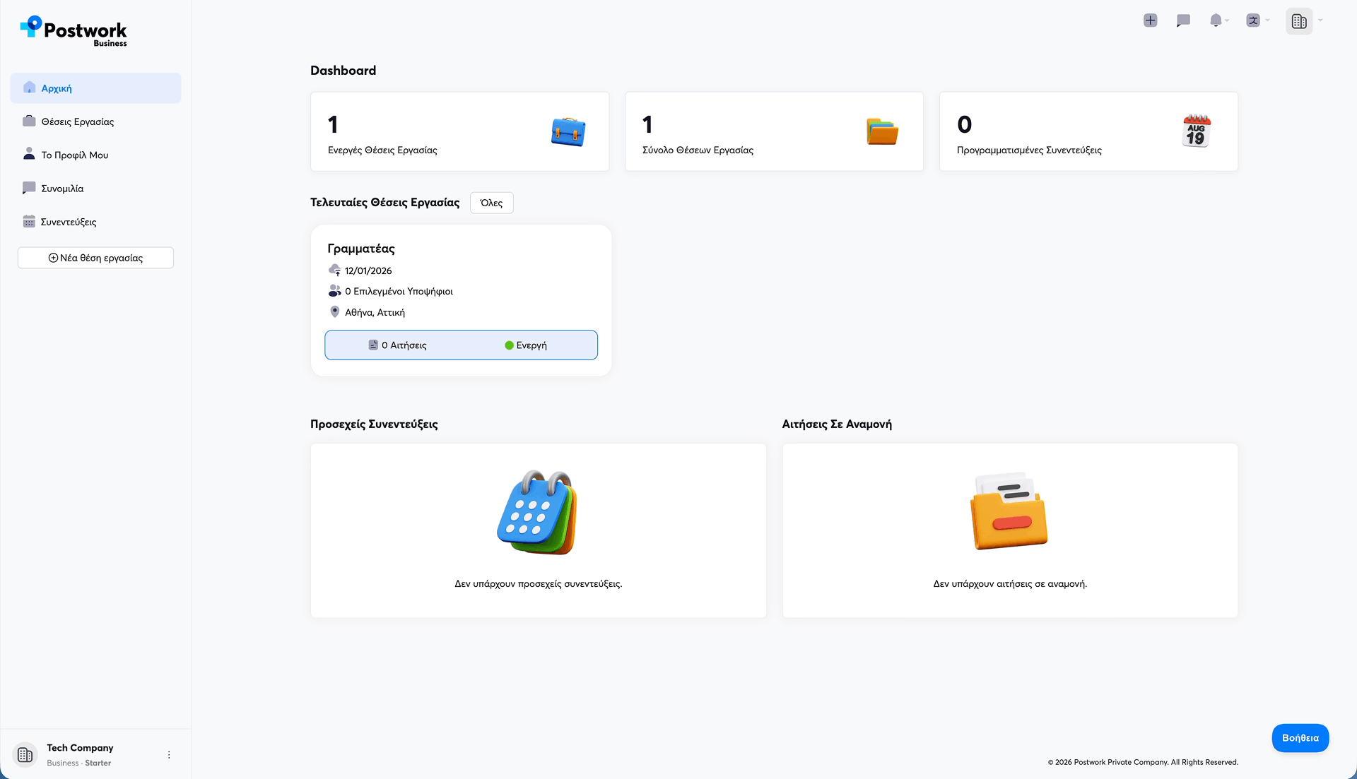 Δημιουργήστε το προφίλ της εταιρείας σας! Το προφίλ σας και οι ενεργές θέσεις εργασίας εμφανίζονται σε όλα τα Apps του Postwork και στο Web!